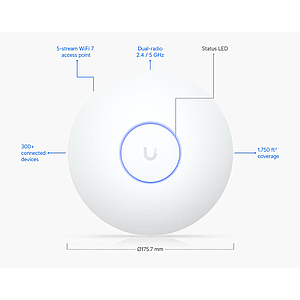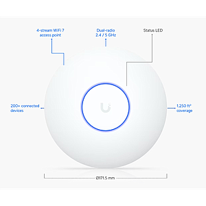 Compact, ceiling-mount WiFi 7 AP with 5 spatial streams and extended signal range.